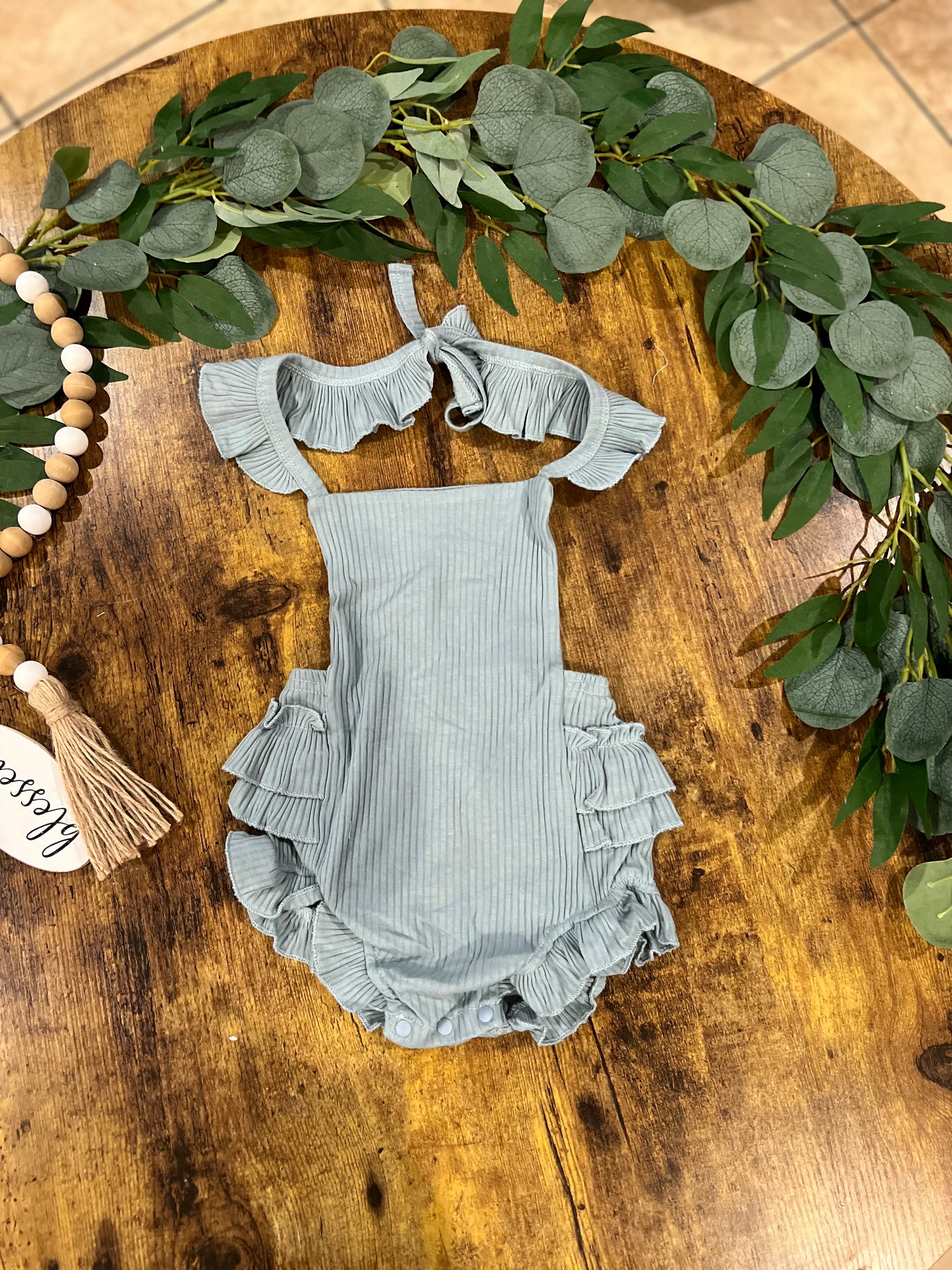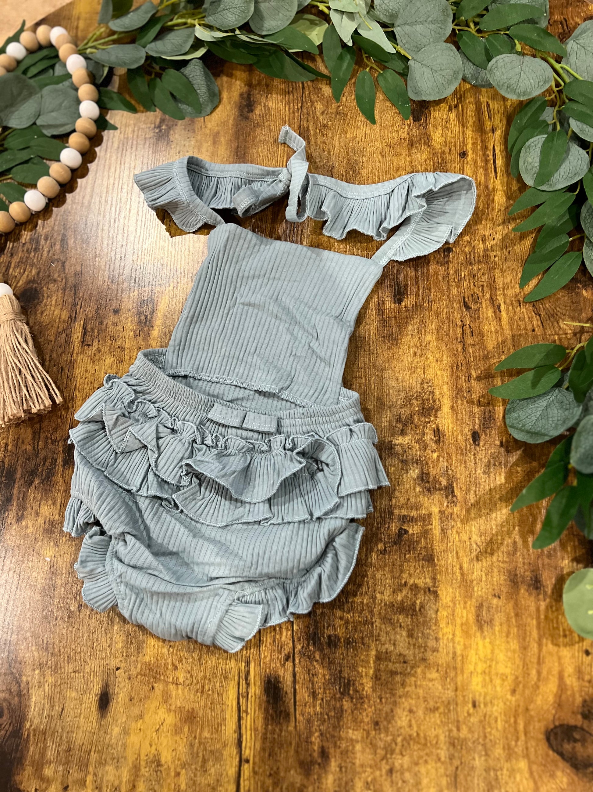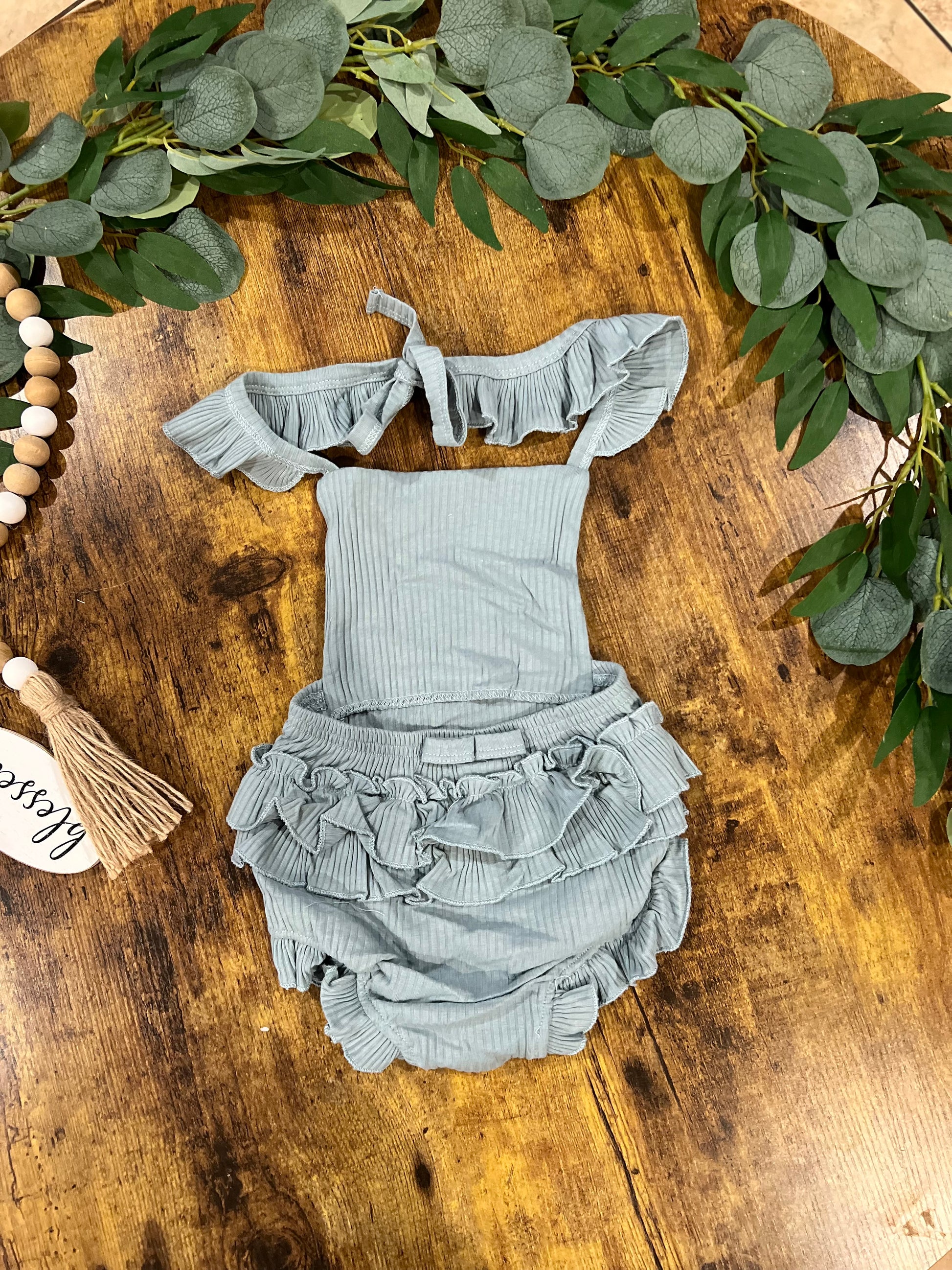 Ruffled Backless Onesie Blue