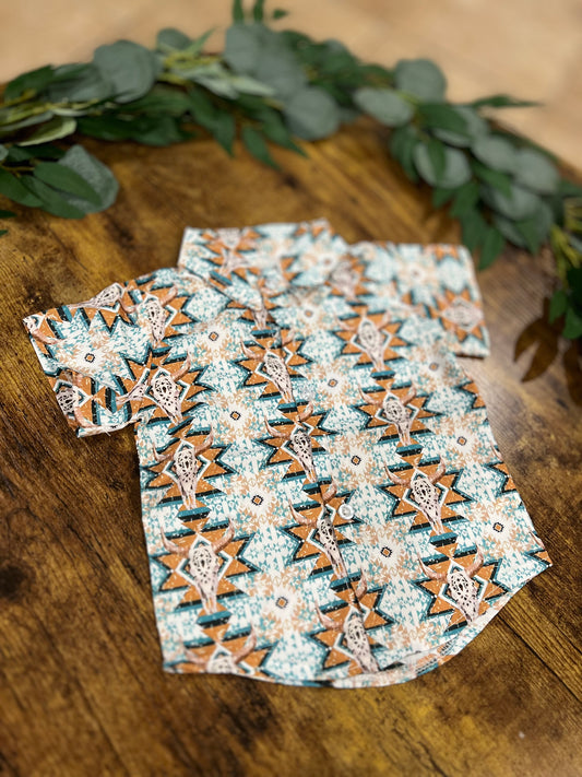 Western Cow Head Button Down Shirt